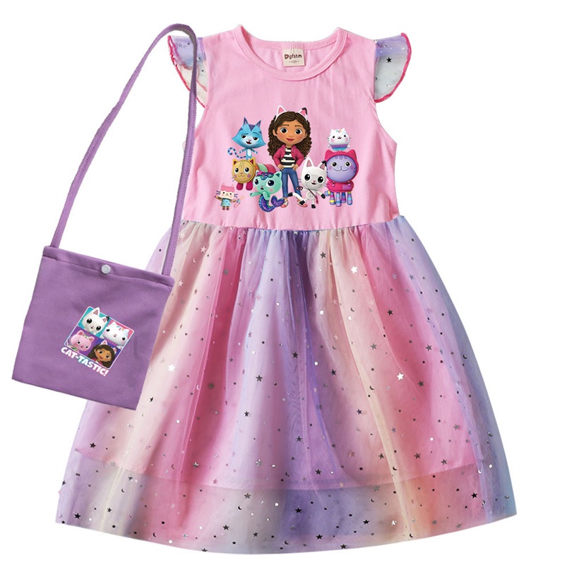 2023 Summer Gabby Cats Costume Baby Girls Gabby'S Dollhouse Dress Kids Cosplay Princess Vestidos Toddler Children Birthday Wedding Party Dresses With Headwear