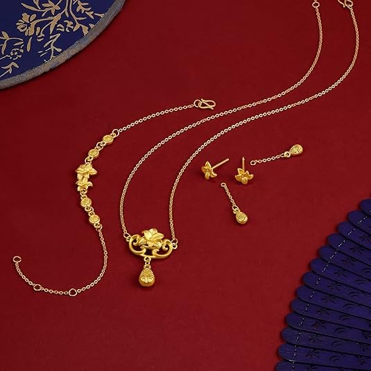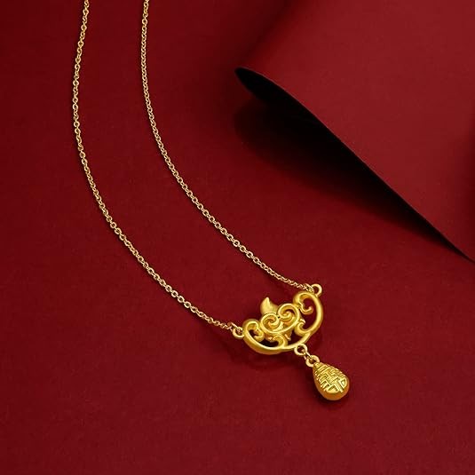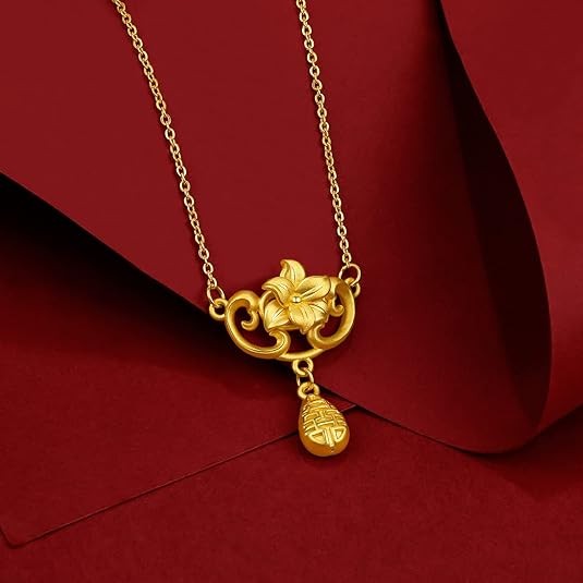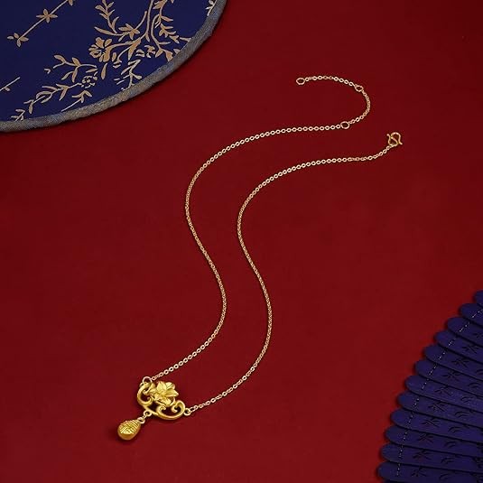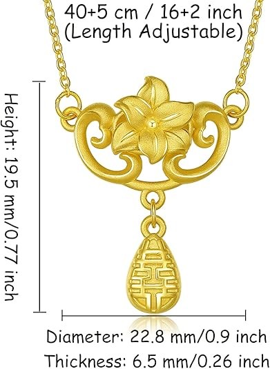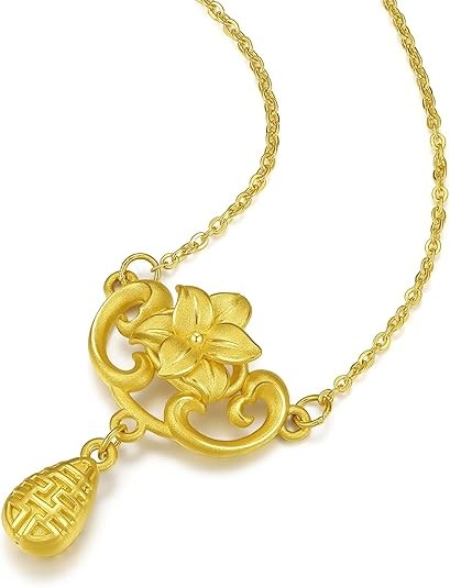 24K Solid Gold Pendant Necklace for Women, Real Pure Gold Jewelry Dainty Elegant Flower Pendant Chain for Men Girlfriend