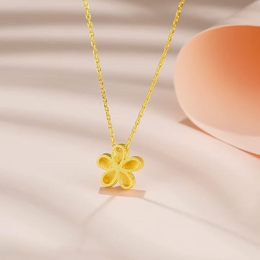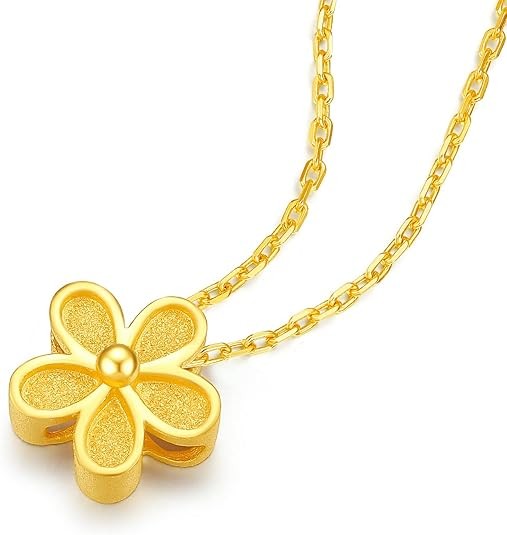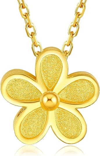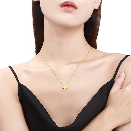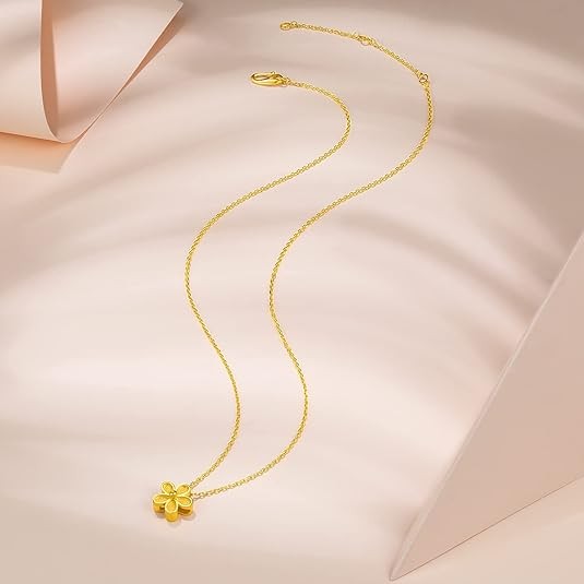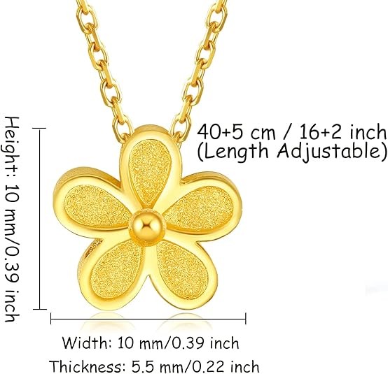 24K Solid Gold Pendant Necklace for Women, Real Pure Gold Jewelry Dainty Elegant Flower Pendant Chain for Men Girlfriend