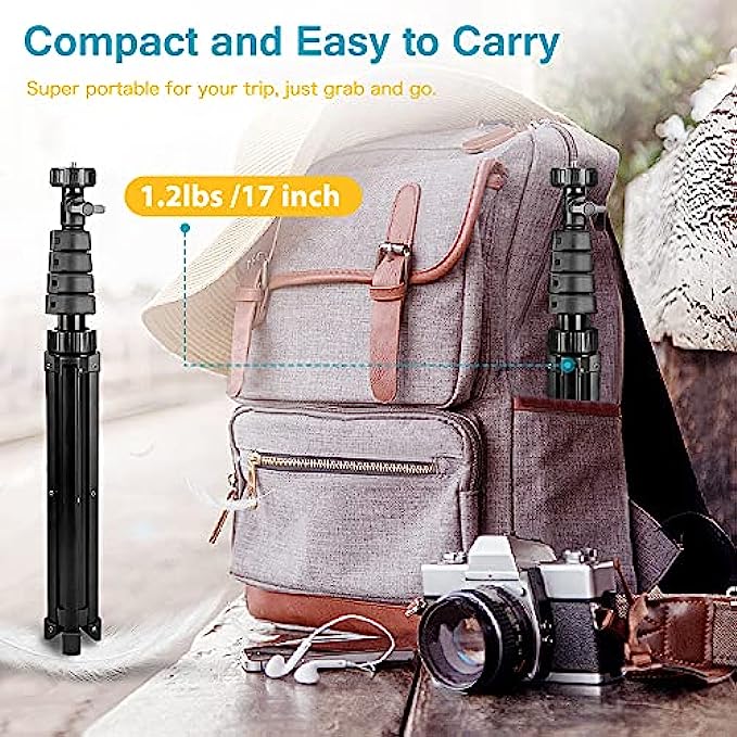 Admirable Height of 62in/5.2ft–With a retracted height of 18.2 inches/1.5 feet and full extension at 62 inches/5.2 feet, it can be locked and secured at any height in between, satisfying most smartphone users’ photography needs.
