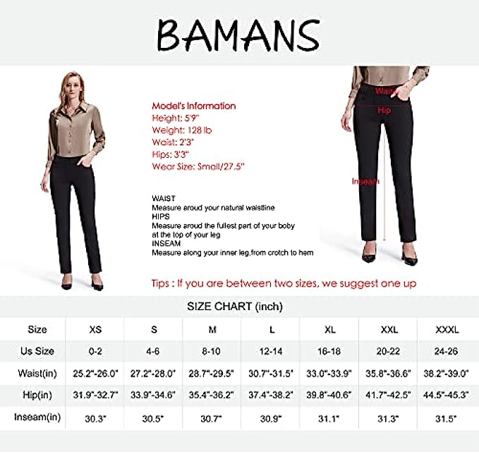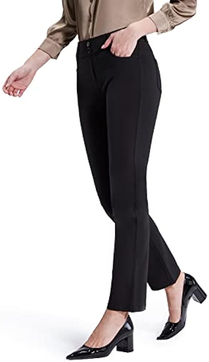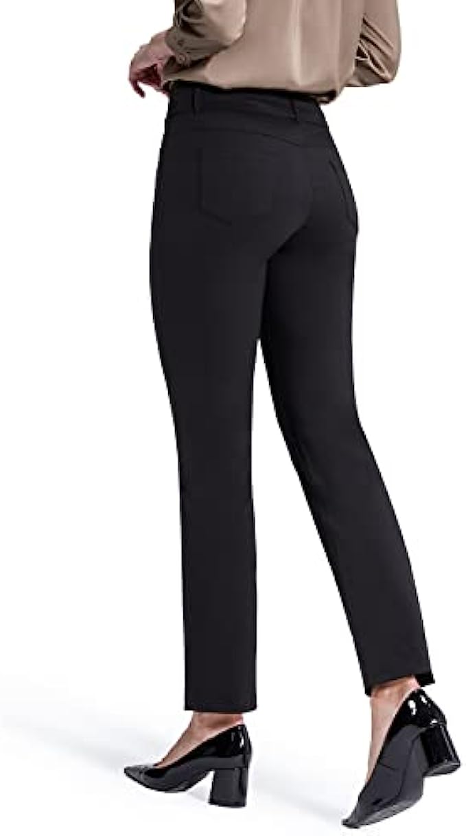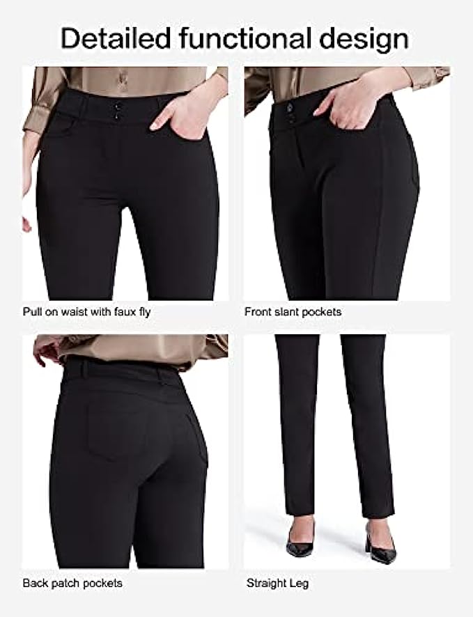 Bamans Dress Pants for Women Straight Leg Stretchy Work Pants Pull-On Business Casual with Pockets