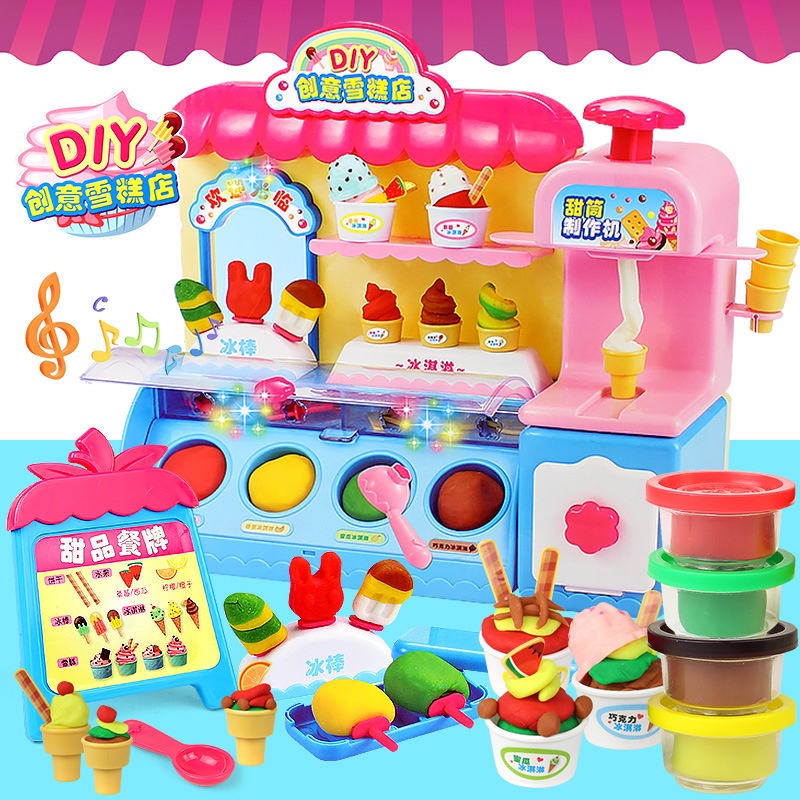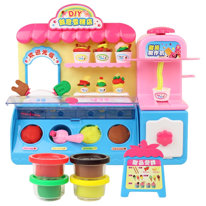 Children's toys kitchen toys educational toys early education toys children's kitchen toys DIY creative ice cream shop colorful mud dessert ice cream machine Xiaoling Plasticine mold childre