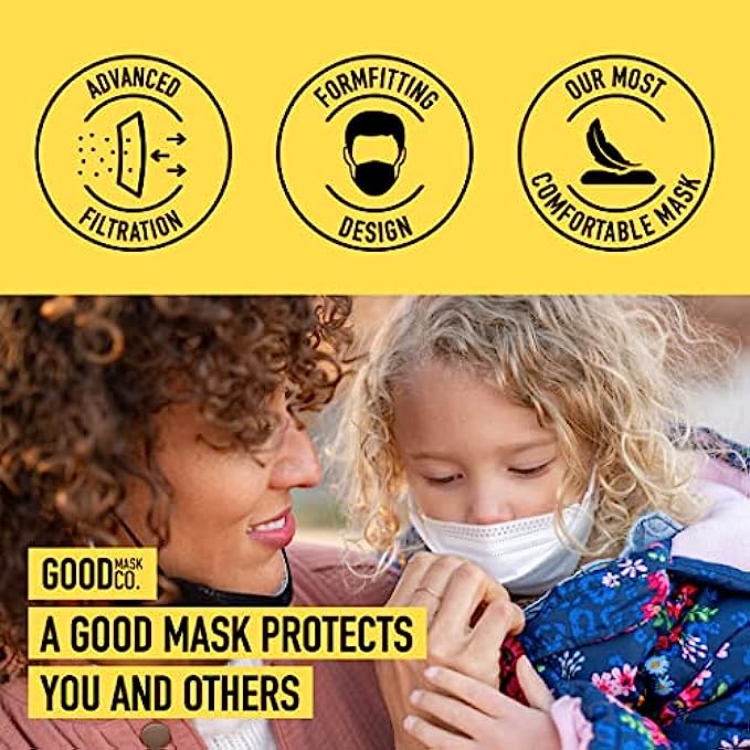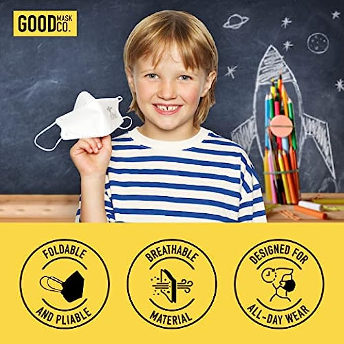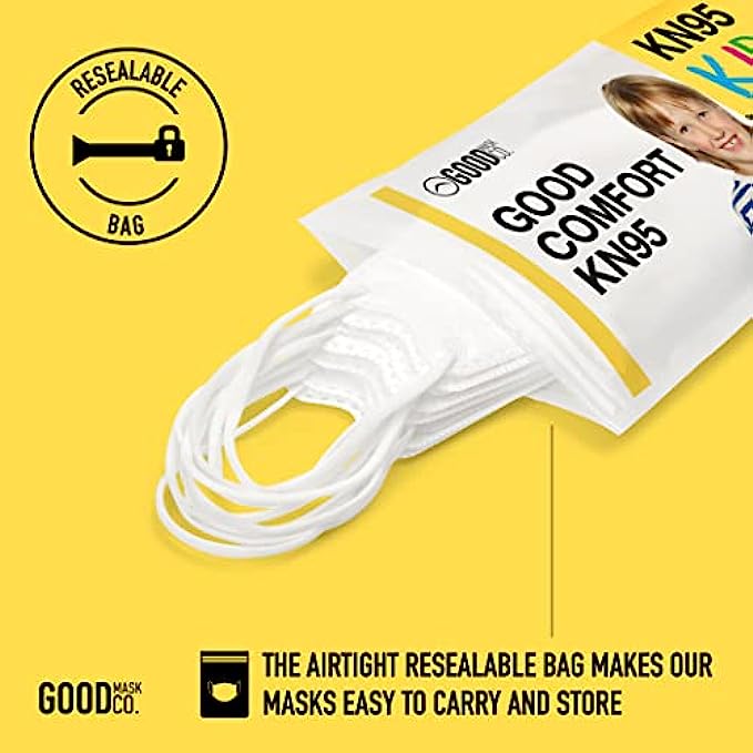 GOOD MASK CO. Good Comfort Kids KN95 Face Mask, Disposable KN95 Face Mask, Folding, Comfortable Face Masks, Bulk Face Masks (25 Pack of Masks, White)