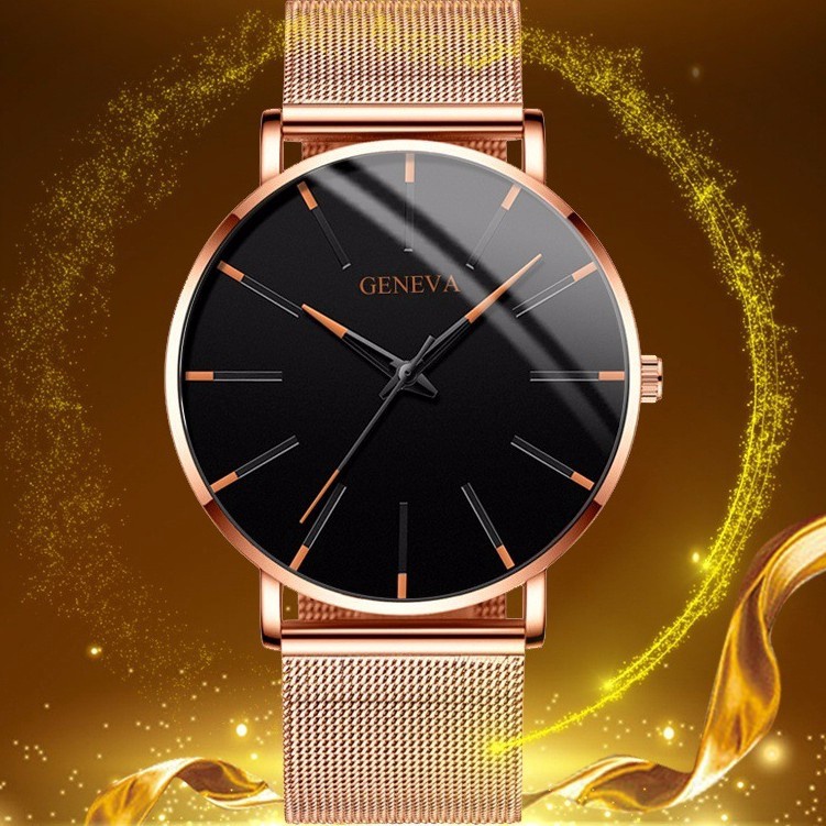 Geneva Ultra-thin Stainless Steel Mesh Belt Watch Luxury Men's Leather Watch Business Casual Quartz Watch