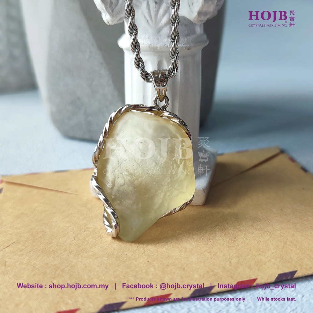 HOJB Authentic Libyan Desert Tektite Rough Stone S925 Pendant 25x32mm (17.1G) Jubaoxuan Pure Meteorite (Gold Meteorite) S925 Silver 25x32mm (17.1G)