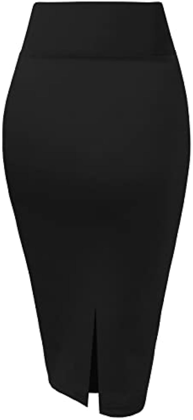 H&C Women Premium Nylon Ponte Stretch Office Pencil Skirt Made Below Knee Made in The USA
