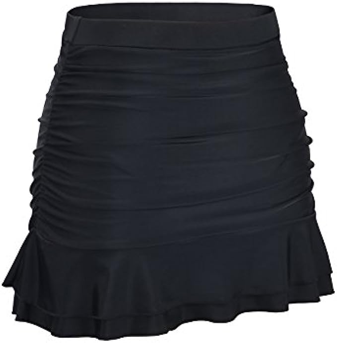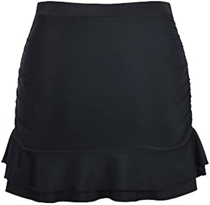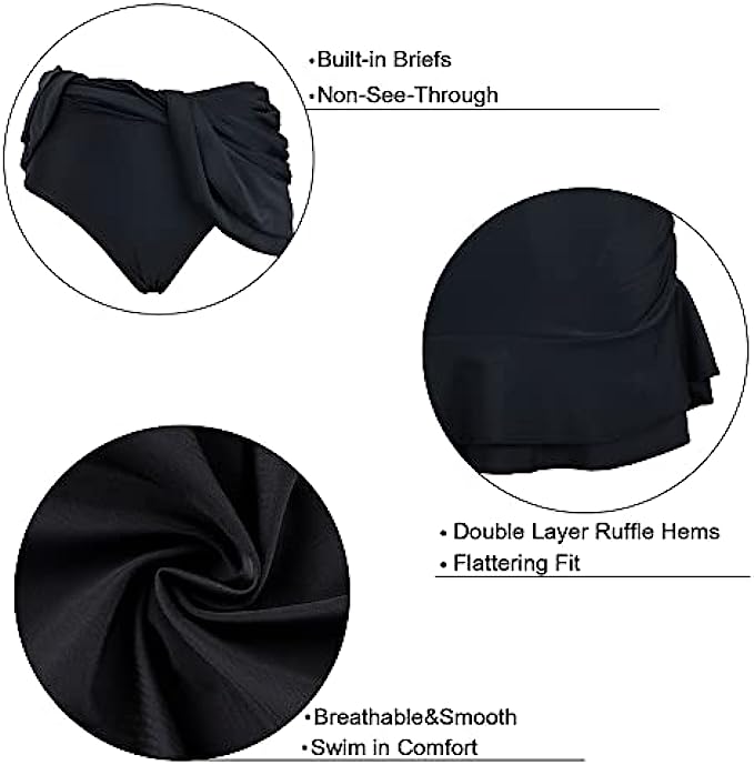 • High waisted swim skirt for concealing tummy better; Double ruffle hemline.