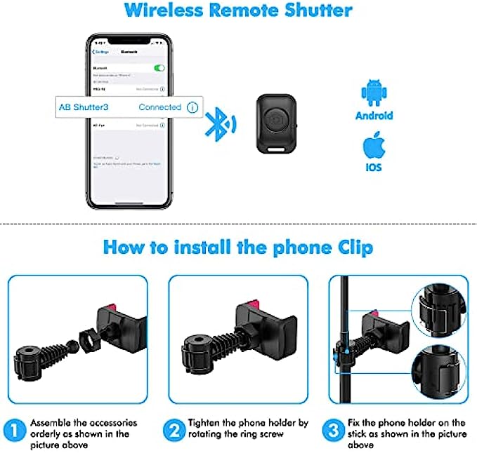 • 【Rotatable Phone Holder】 Compatible with ALL smartphones with or without a case, suitable for iPhone X/7 Plus, 7, 8, 8 Plus, X, 6, 6s, 5, 5s, 4, 4s/Samsung Note 8, S8/S9/LG/HTC. 360 degree rotatable, adjustable viewing whether it may be horizontal, vertical.( Package included: 1 x 10.2 inch selfie ring light, 1 x tripod stand ,1 x phone holder, 1 x User manual ,1 x remote shutter)
