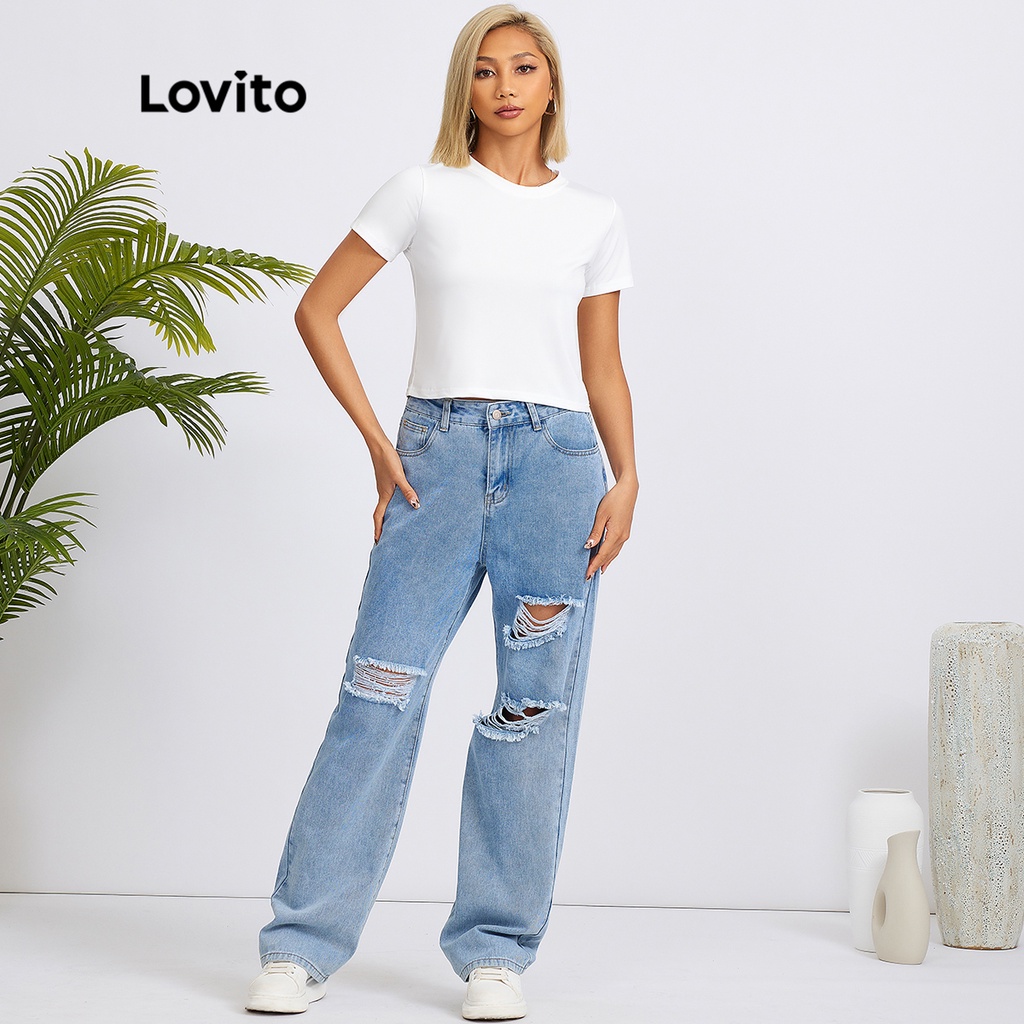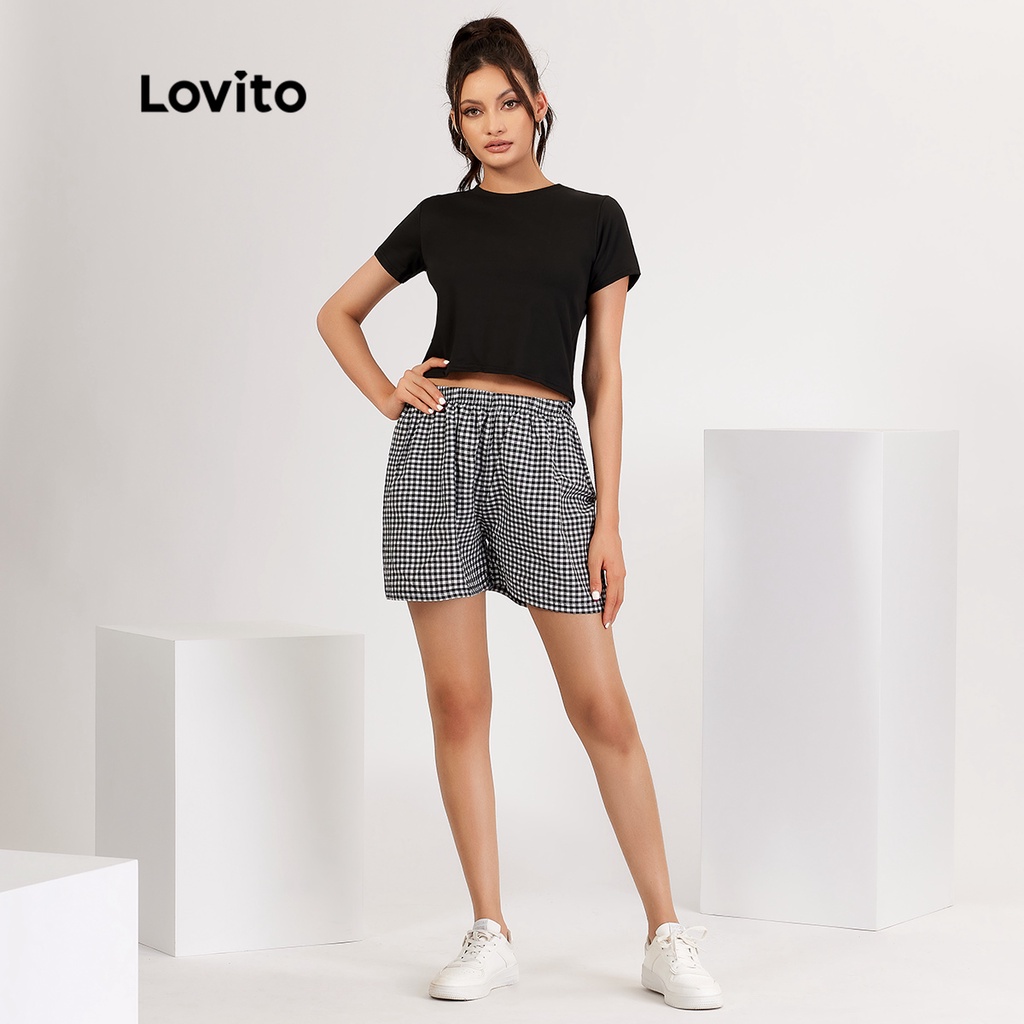 Lovito Casual Plain Crew Neck Basic Tshirt for Woman L18X101 (White/Pink/Blue/Black)