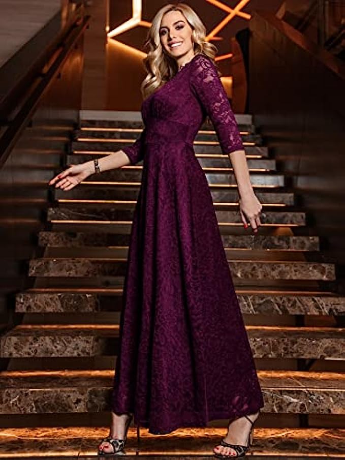 90% Nylon, 10% Elastane Imported Zipper closure Size RECOMMEND:US 4/6(Small), US 8/10(Medium), US 12/14(Large), US 16/18(X-Large), US 20 (XX-Large). This Elegant Dress is Perfectly Fit For All The Occasions: Formal Evening Prom, Wedding Party, Cocktail Club. Full Lace Overlay, Floral V-Neck, See-Through Sleeves. Vintage and Chic Style, Zipper on the Back, Retro High Waist Design, Floor Length. Care Instructions: Please Put The Dress Into A Laundry Bag For Wash It With Low Temperature and Iron Carefully in Low Temperature Too.