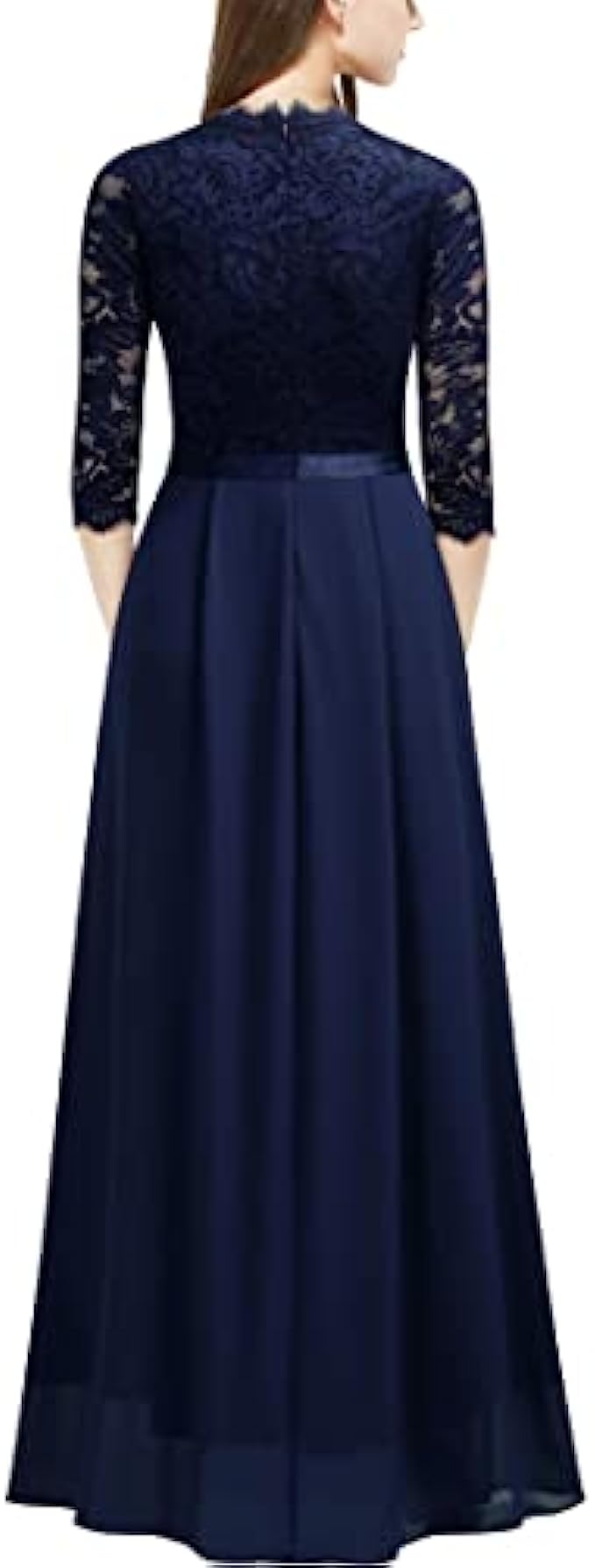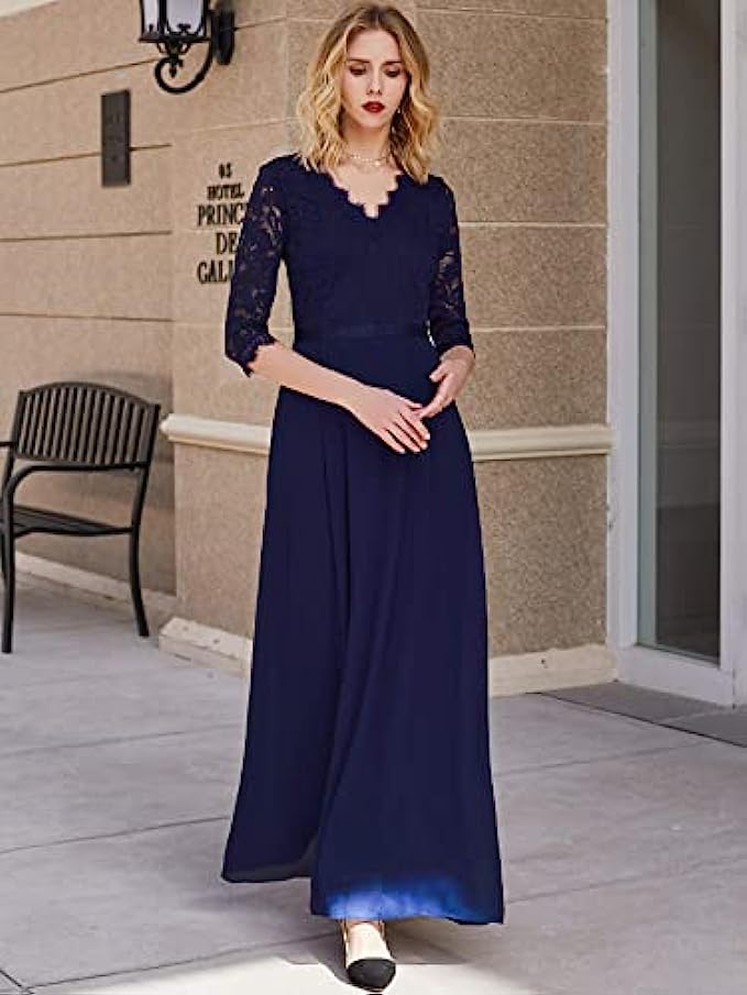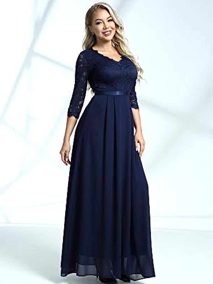 90% Polyester, 10% Spandex Imported Zipper closure Size RECOMMEND:US 4/6(Small), US 8/10(Medium), US 12/14(Large), US 16/18(X-Large),US 20 (XX-Large) Deep V Neck, Half Sleeve, Back Zipper, Floor Length Vintage Floral Lace Chiffon Design, Formal Long Maxi Style, Suit for Evening,Cocktail,Bridesmaid and other Formal Occasion Please Note that The Top Lace is Stretchy and Please Refer to the Size Chart in Left Product Description Picture Care Instructions: Please Put The Dress Into A Laundry Bag For Wash It With Low Temperature and Iron Carefully in Low Temperature Too