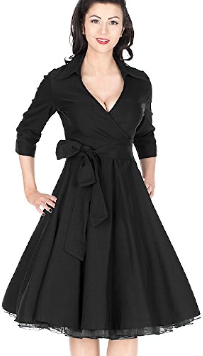 Miusol Women's Deep-V Neck Classical Bow Belt Vintage Casual Swing Dress