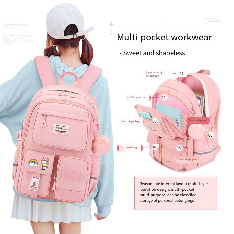 New cute elementary school students schoolbag girls schoolbag children's shoulder bag splashproof shoulder backpack wearable large-capacity schoolbag for 1-6-9 grade