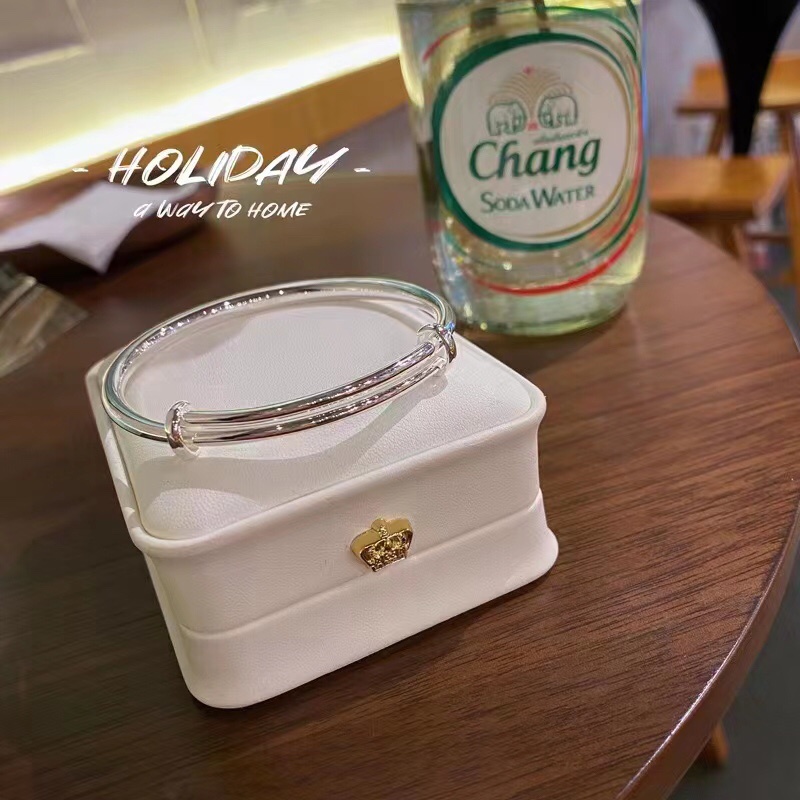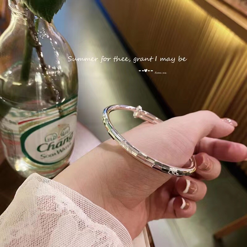 Round Stick Laser IDO Sliding Pull Bracelet Pure Silver 999 Shiny Surface