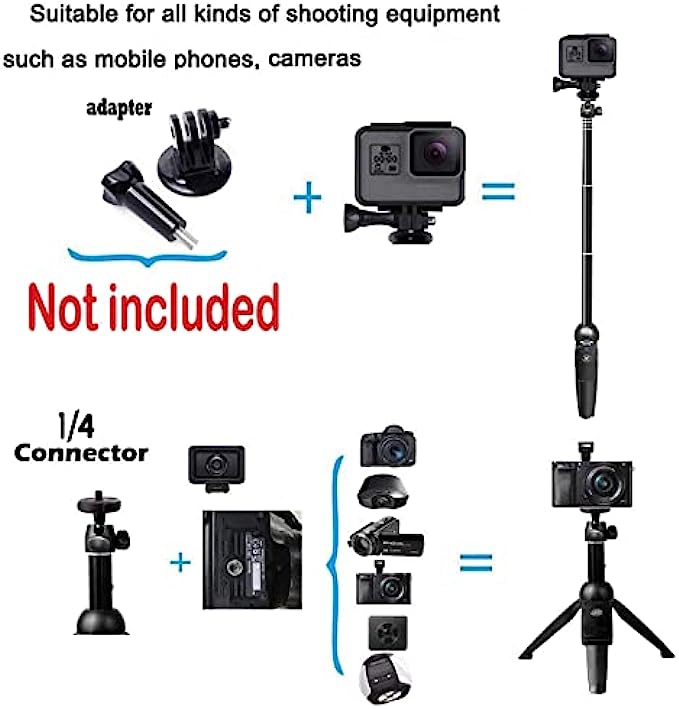 • 【3-In-1 Selfie Stick and Tripod Stand】Selfie stick tripod can be extended between 8.07 to 40 inches, which makes it very suitable for Photograph, Face time, Business, living broadcasting more. It features a fully expandable handheld selfie stick handle with built-in collapsible legs that allow it to double as a stand-alone tripod when opened. You can easily switch between Selfie Stick Mode & Phone Tripod Mode for your preferred use.