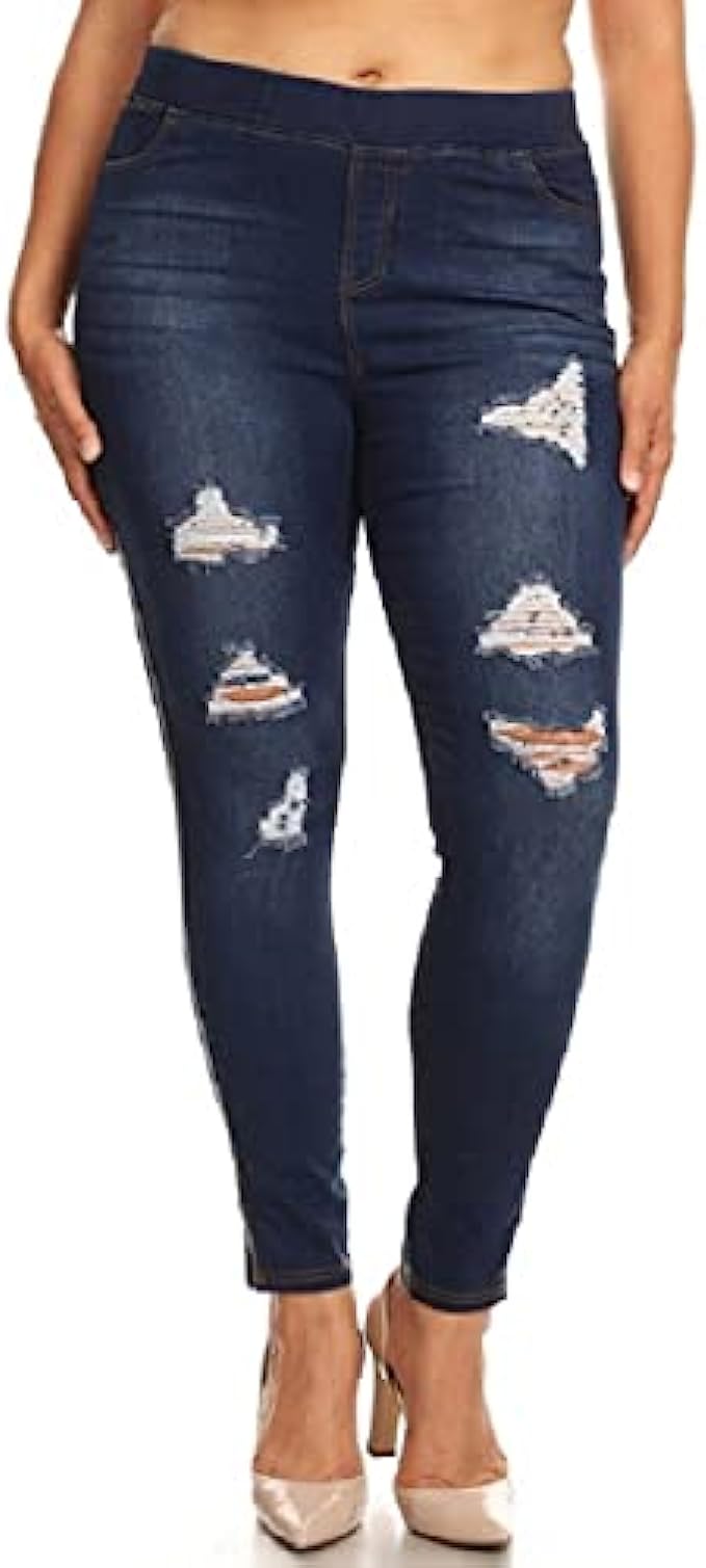 76% Cotton, 22% Polyester, 2% Spandex Imported Pull On closure Machine Wash Soft and stretchy, comfortable cotton blend denim fabric,adapts well to the body Easy pull on closure with elastic waistband;Full length and semi high waisted as they reach the natural waistline Breathable touch giving you all day comfort and custom fit without the risk of sagging, bagging