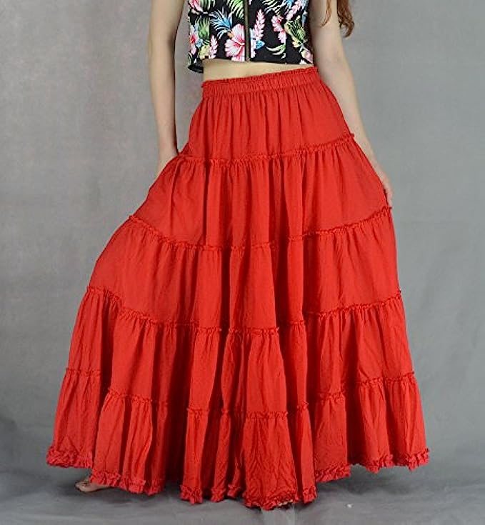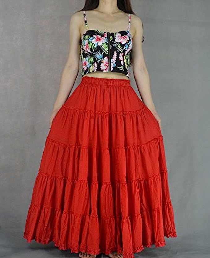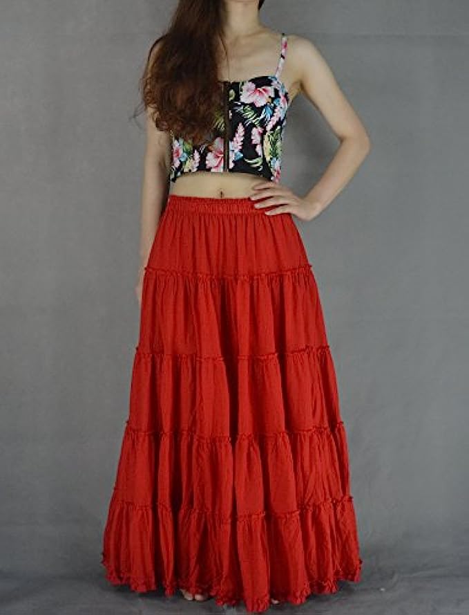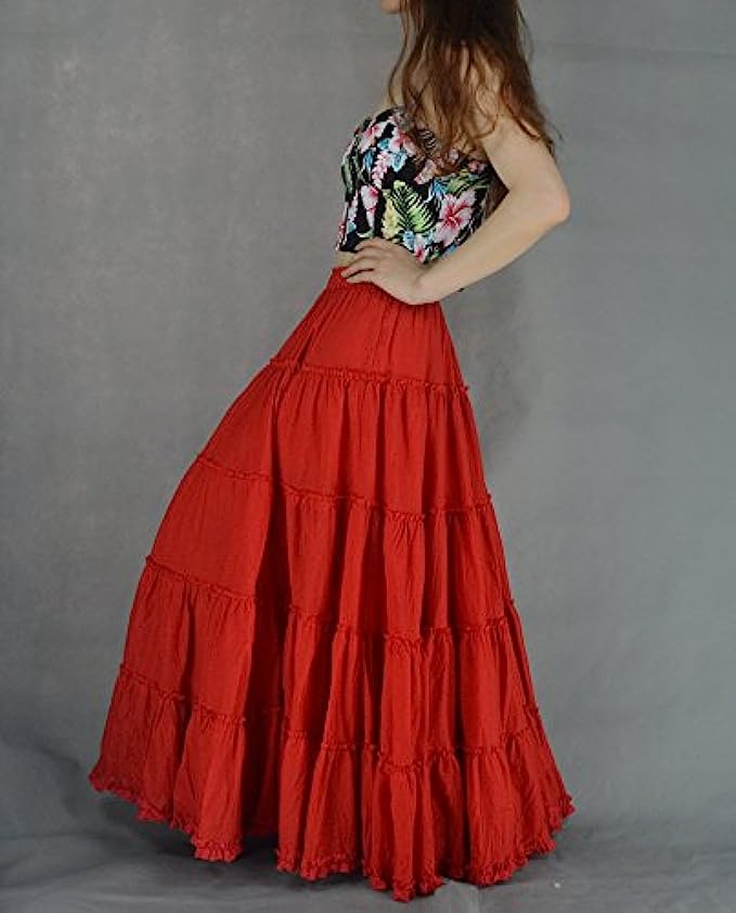 YSJERA Women's Cotton 5 Tiered A Line Pleated Maxi Skirt Long Boho Gypsy Dance Skirts