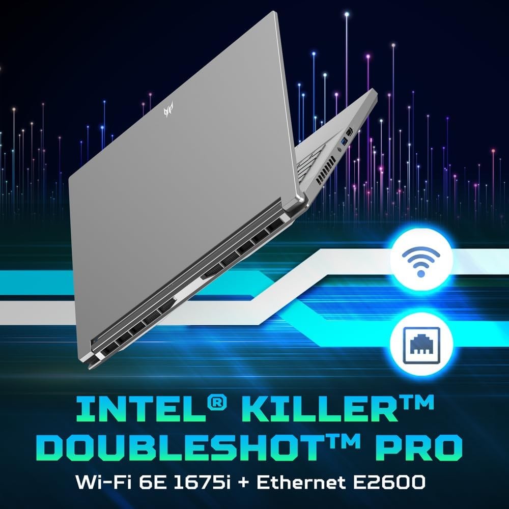 • FULLY CONNECTED - Equipped with Intel Killer DoubleShot Pro featuring Wi-Fi 6E AX1675 and Killer Ethernet E2600 ensuring the most reliable link to annihilate online adversaries and secure victory. Connect your arsenal of devices using diverse USB 3.2 Gen2 ports, a lightning-fast Thunderbolt 4 USB-C and HDMI 2.1. A MicroSD Card Reader is available for added versatility.