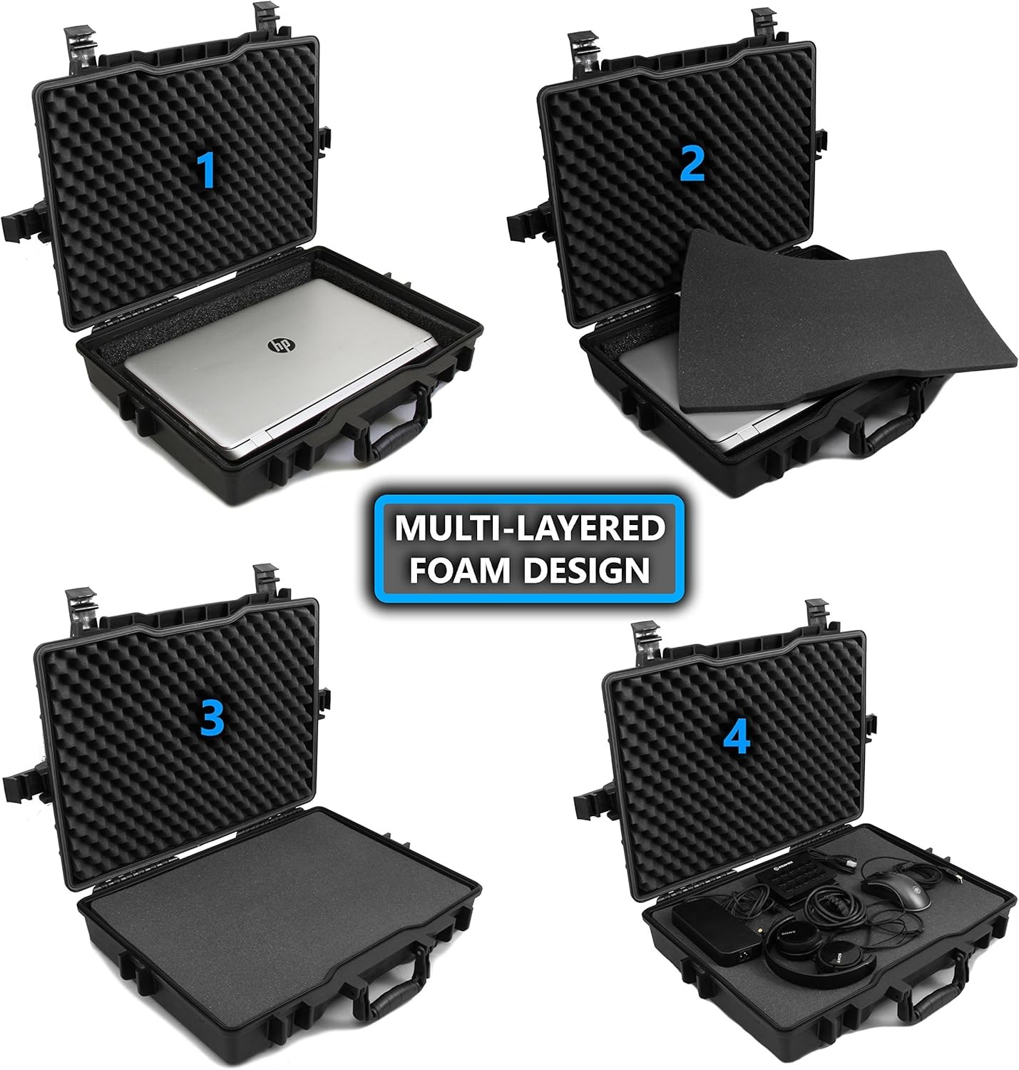 • Waterproof Protection from Spills & Moisture: This laptop case offers your computer defense from the elements with an airtight design & premium sealing technology. Internal Dimensions: 18" x 12.5" x 3.25". External Dimensions: 21" x 16" x 4"