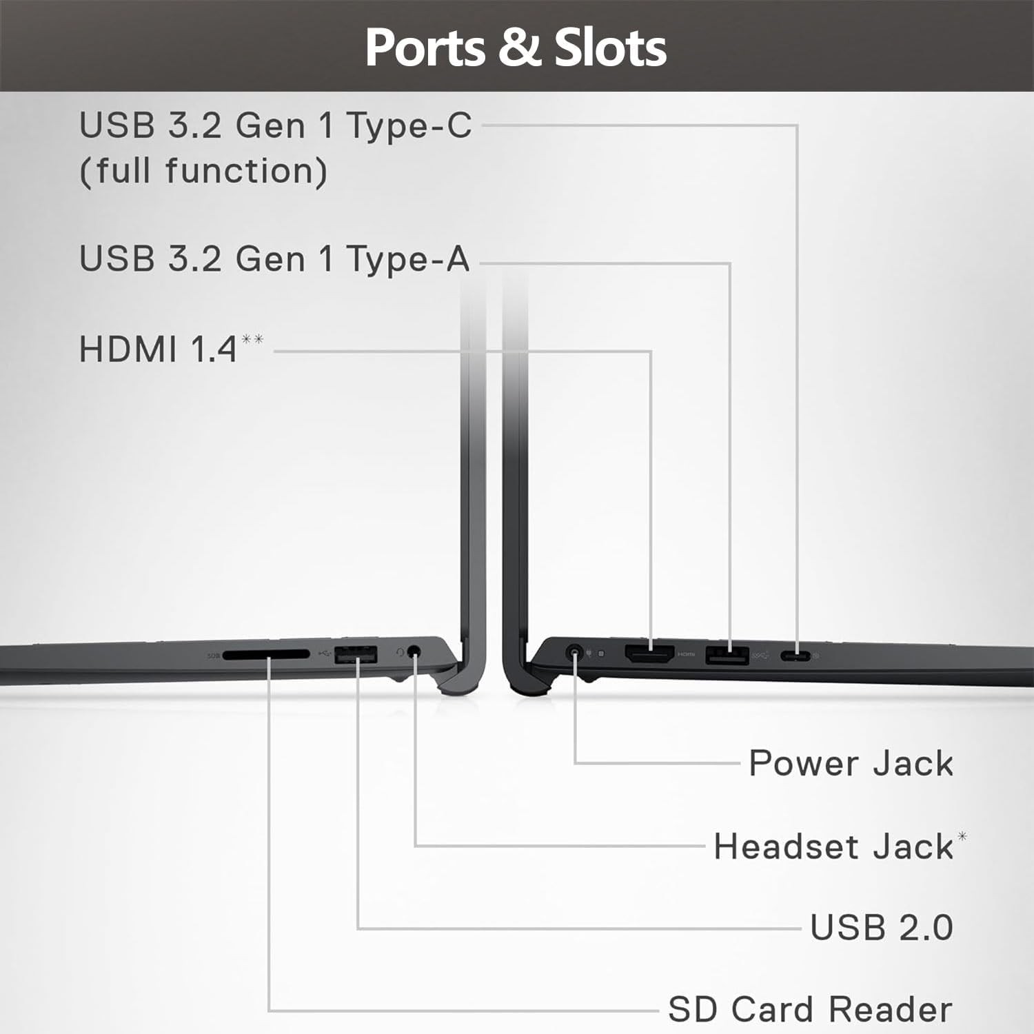[Tech Specs] 1 x SD card reader, 1 x USB 3.2 Gen 1 Type-C, 1 x USB 3.2 Gen 1, 1 x USB 2.0, 1 x HDMI 1.4, 1 x Headset Jack, Numeric Keypad, Webcam, Wi-Fi 6