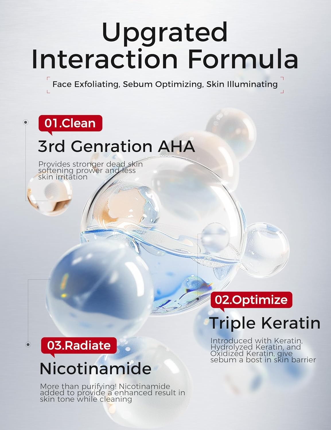 GENTLE YET EFFECTIVE FACE EXFOLIATOR: NING DERMOLOGIE Peeling Gel combines AHA & PHA for a balanced exfoliation. AHA high-effectively dissolve dead skin cells, unclogs pores, and accelerates skin renewal, while PHA, a third-generation fruit acid, provides more gentle exfoliation, deep hydration, and antioxidant protection, improving skin texture. With continued use, pores appear more refined, and skin feels clean and refreshed without dryness or tightness.