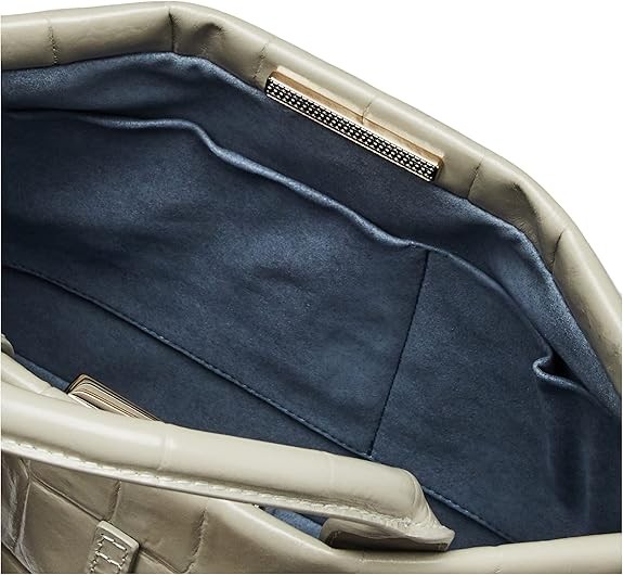 Leather tie detail and gold arch logo Internal open pocket and internal phone slot Light Gold Finish