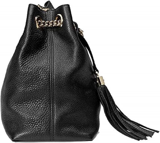 • Details: Pebble leather. Light fine golden hardware. Double chain shoulder straps with leather shoulder pad; 7" drop. Detachable leather tassel.