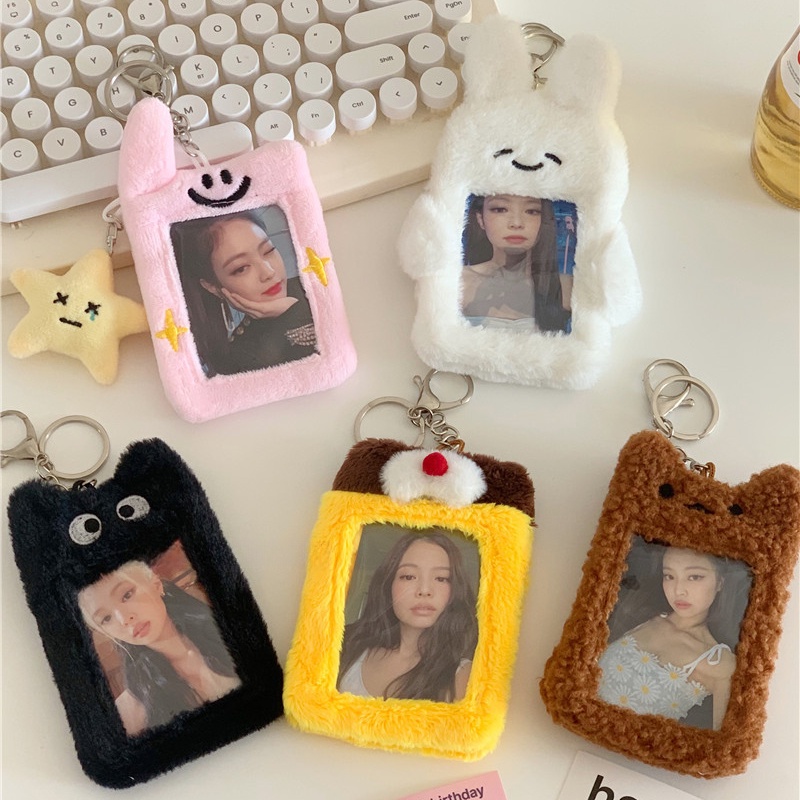 Ins Korean Cute Cartoon Plush Card Holder with Keychain Campus Card Bag idol Photocard Protective Case Stationery - High Quality, 100% Brand New, Women Bags, Others