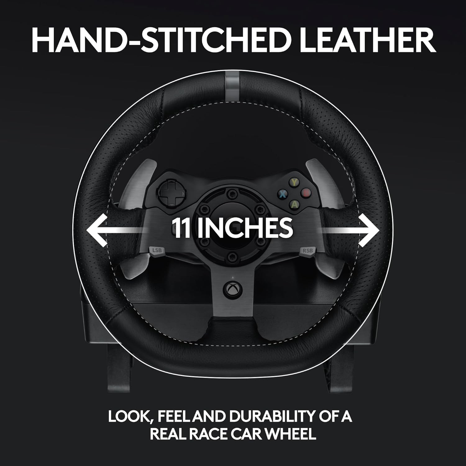 Logitech G920 Driving Force Racing Wheel and Floor Pedals, Real Force Feedback, Stainless Steel Paddle Shifters, Leather Steering Wheel Cover for Xbox Series X|S, Xbox One, PC, Mac - Black