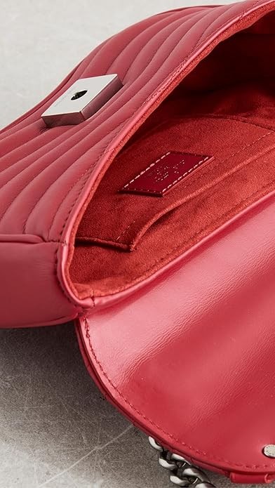 •  reinforces the history of this heritage piece, Quilted stripes, Silver-tone hardware, Raised rainbow logo at top handle