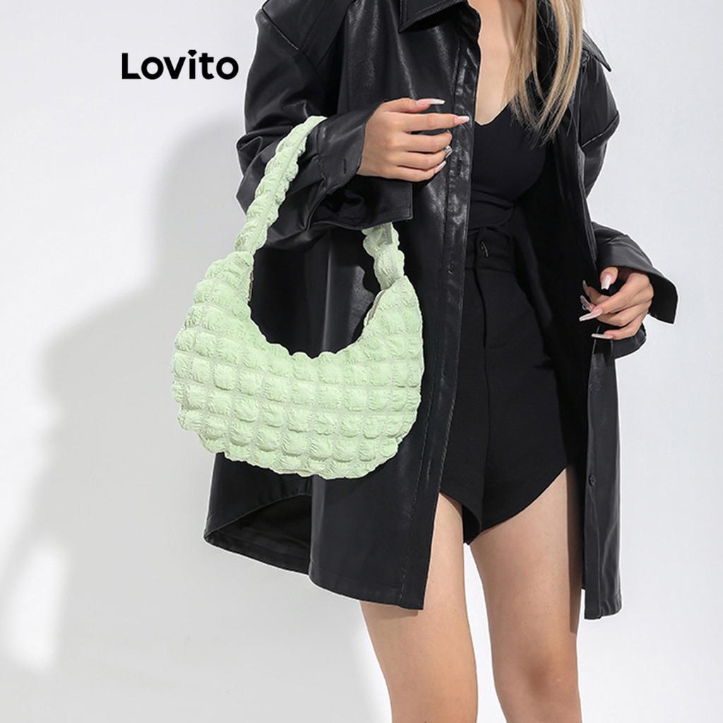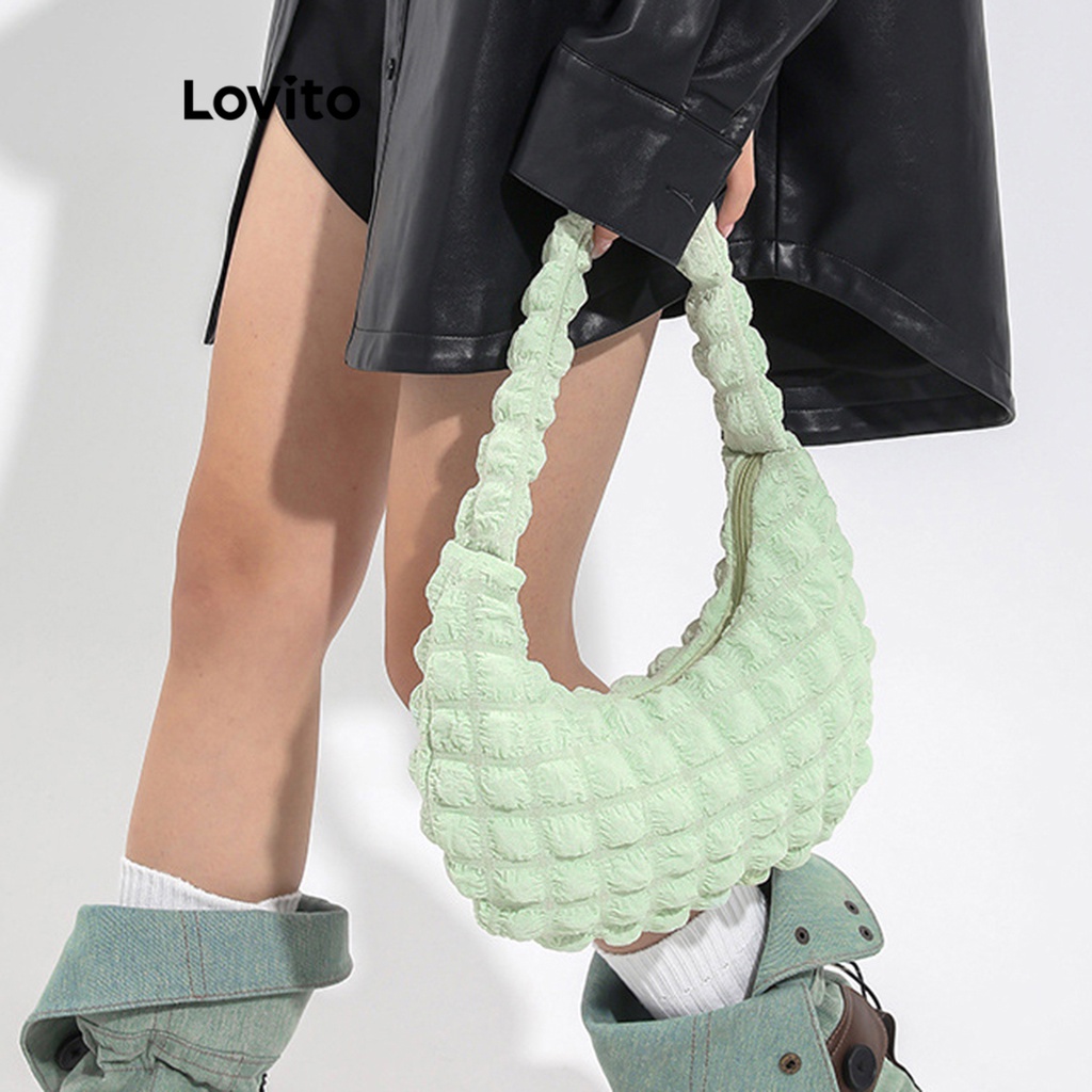 Lovito Casual Plain Basic Small Shoulder Bag for Women L69AD089 (White/Purple/Green/Black)