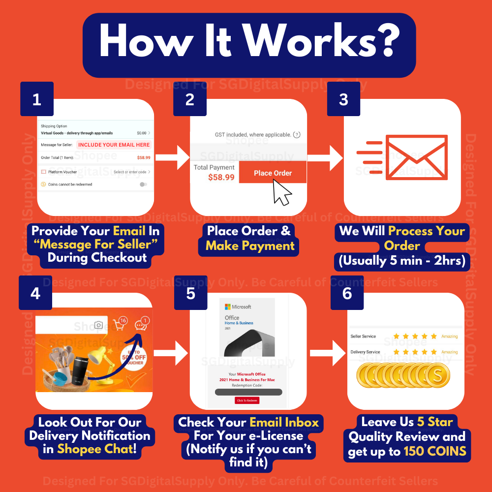 Microsoft Office Pro Plus 2021 License - For Windows 10/11 ONLY (Online Activation)(Fast Email Delivery)