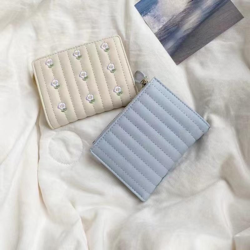 New Korean Version Embroidered Simple Cute Cropped Bifold Wallet For Woman