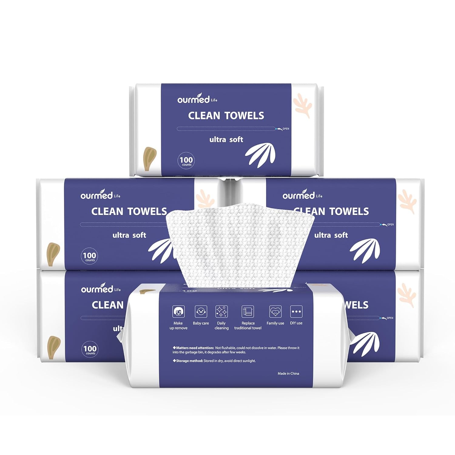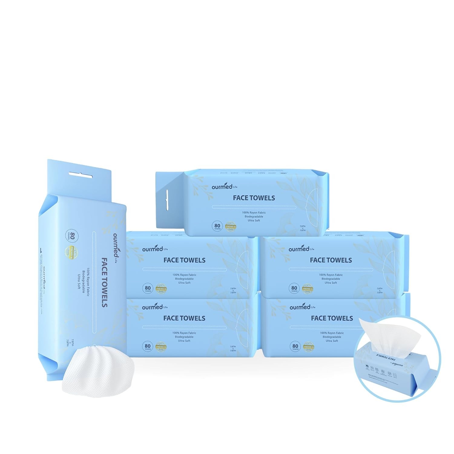 Ourmed Life Face Towels, Disposable Biodegradable Clean Facial Wash Cloth for Sensitive Skin, Lint- free Facial Tissue for Cleansing, Skincare and Makeup Remover, Dry Wipes, 600 count