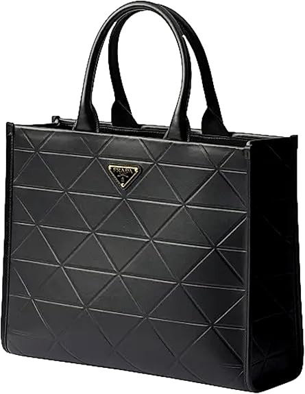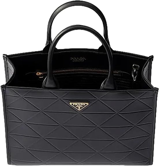 ndulge in the refined sophistication of the Prada Symbole Tote, a testament to timeless Italian craftsmanship and modern luxury. Meticulously constructed from supple calfskin leather in an exquisite Nero black, this elegant tote is defined by its signature triangle quilted motif—a subtle yet striking nod to Prada’s iconic geometric logo. Designed for the discerning woman, the soft structure of the bag exudes understated opulence, while its fine-grain texture and impeccable stitching reflect the house’s heritage of artisanal excellence. The spacious interior is lined in Prada monogram nylon and features multiple compartments, ensuring both style and function are flawlessly balanced. Accented with the enameled metal triangle logo, polished hardware, and refined leather handles, this piece is more than a handbag—it is a symbol of status, taste, and modern femininity. Whether carried by hand or styled with its detachable shoulder strap, the Prada Symbole Tote brings an effortless elegance to every ensemble. Model: 1BA379 Black Soft Grain Calfskin Leather Gold-Tone Hardware Prada Enamel Triangle Logo Rolled Leather Top-Handles Detachable Leather Shoulder Strap 1 Slip Pocket 1 Zippered Pocket Prada Monogram Nylon Lining Dimensions: 12" x 3" x 9" (LWH) Handle Drop: 4.5" Strap Drop: 21" Made in Italy Includes Prada Dustbag and Authenticity Cards
