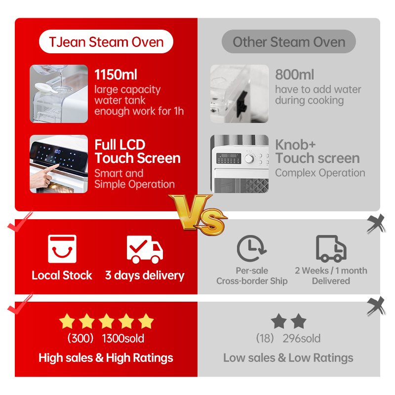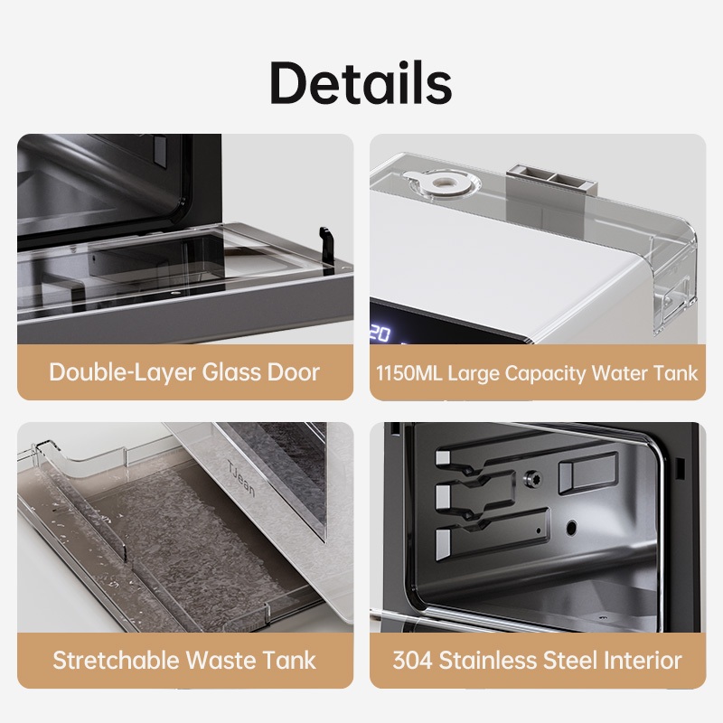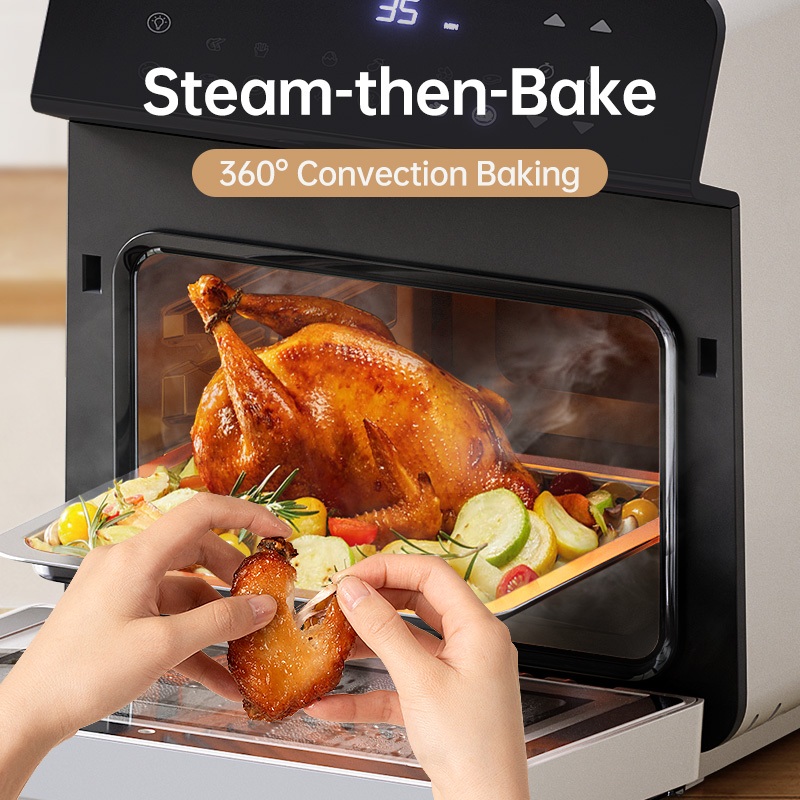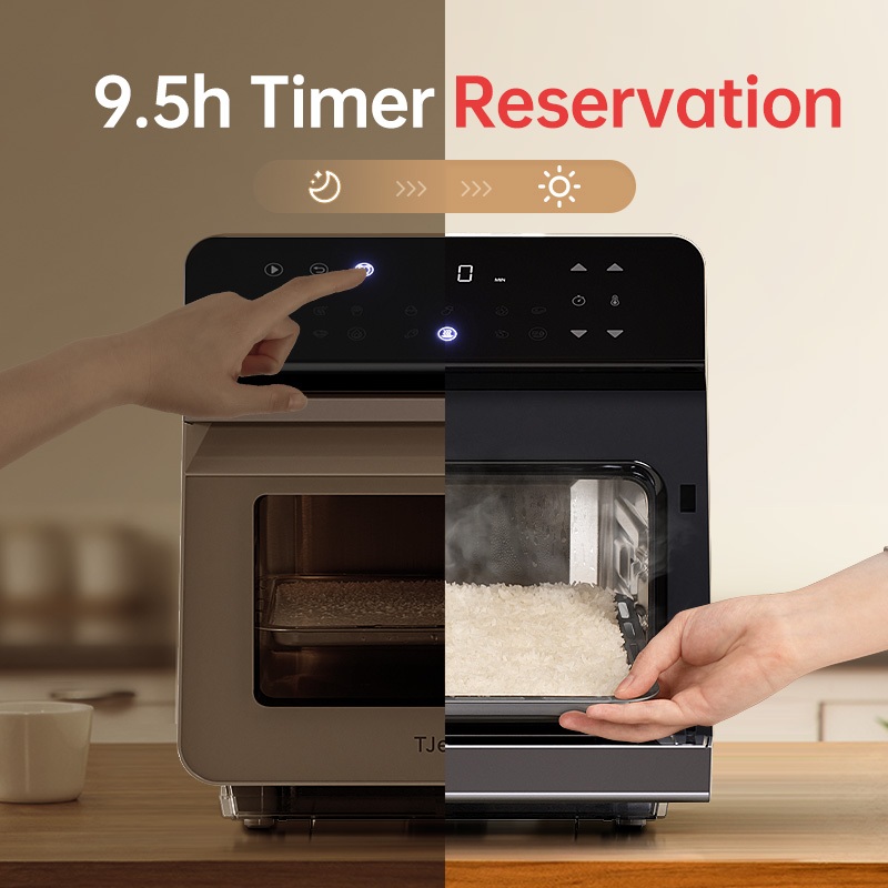 TJean 1550W Multifunctional Smart Household Visual Steam Oven Air Fryer Oven Toaster Steamed Rice&Fish Appointment Timing Heating Food 10.5L(ST101)