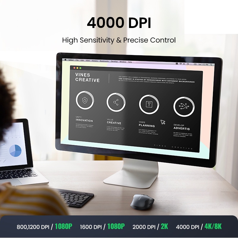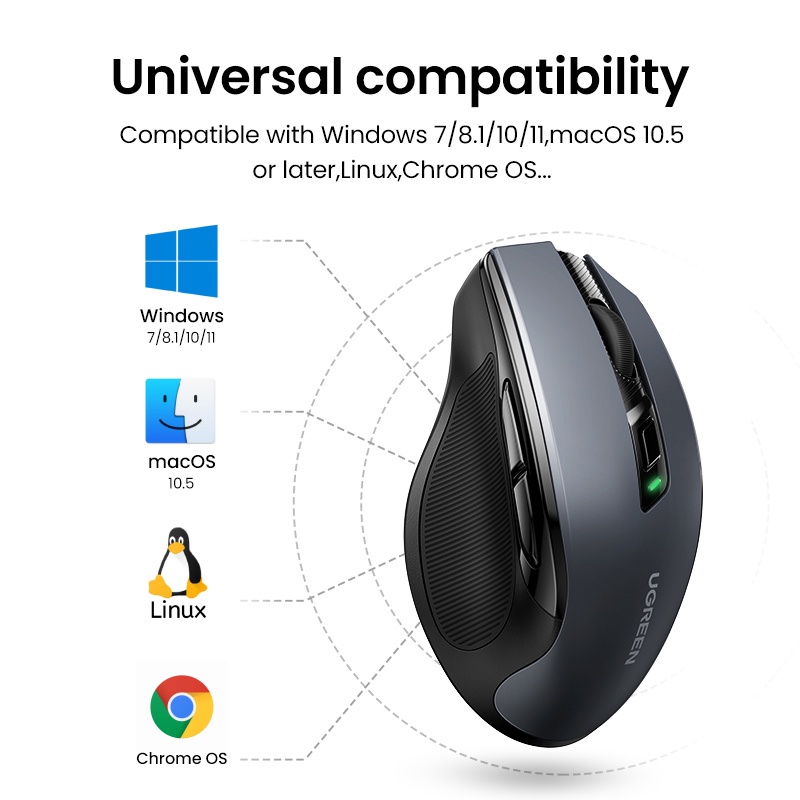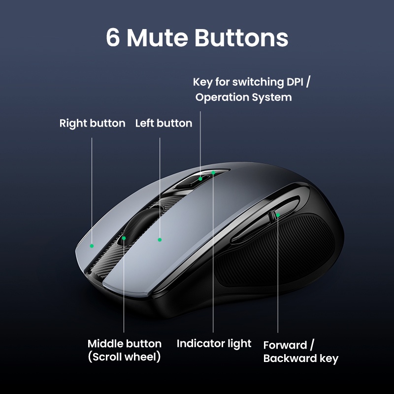 UGREEN Wireless Mouse, 6 Silent Buttons, 2.4G with USB Mini Receiver, 5 Level DPI Setting 4000DPI, Ambidextrous PC / Mac /Linux Laptop